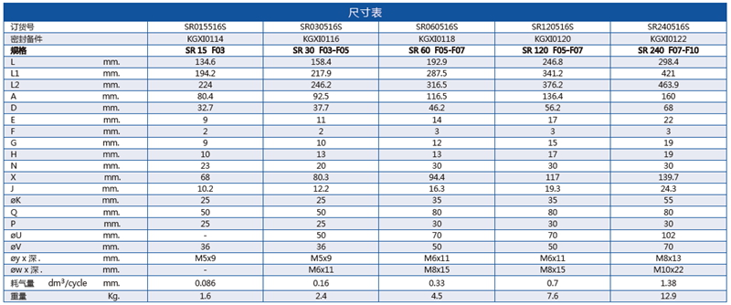 工作介质:在润滑空气情况下,不得使用洗涤剂油或与NBR相溶的润滑油。